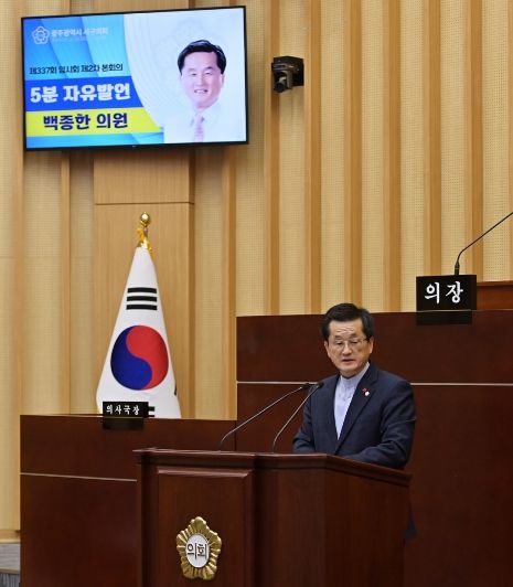 한방통신사 김성의 기자 | 광주 서구의회 백종한 의원(화정3동, 화정4동, 풍암동)이 23일 제337회 임시회 제2차 본회의에서 5분자유발언을 통해 재난·안전·민생·복지 현장에서 근무해 온 공직자들의 노고를 치하했다.