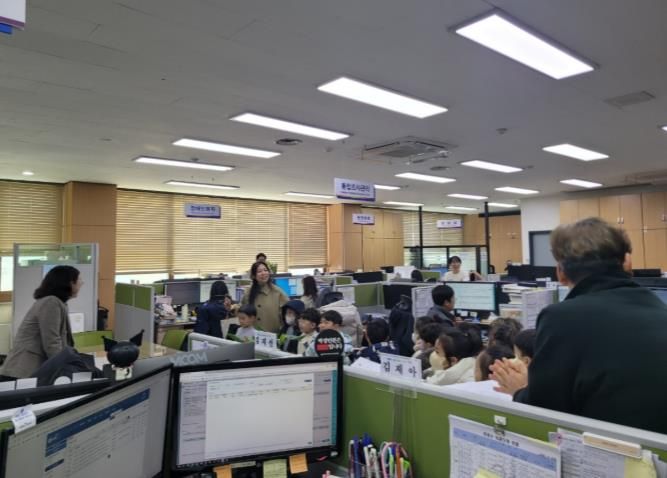 군청 관계자들은 각 부서의 역할을 어린이들이 이해할 수 있도록 쉽게 설명하며, 현장에서 이루어지는 다양한 업무를 소개했다.