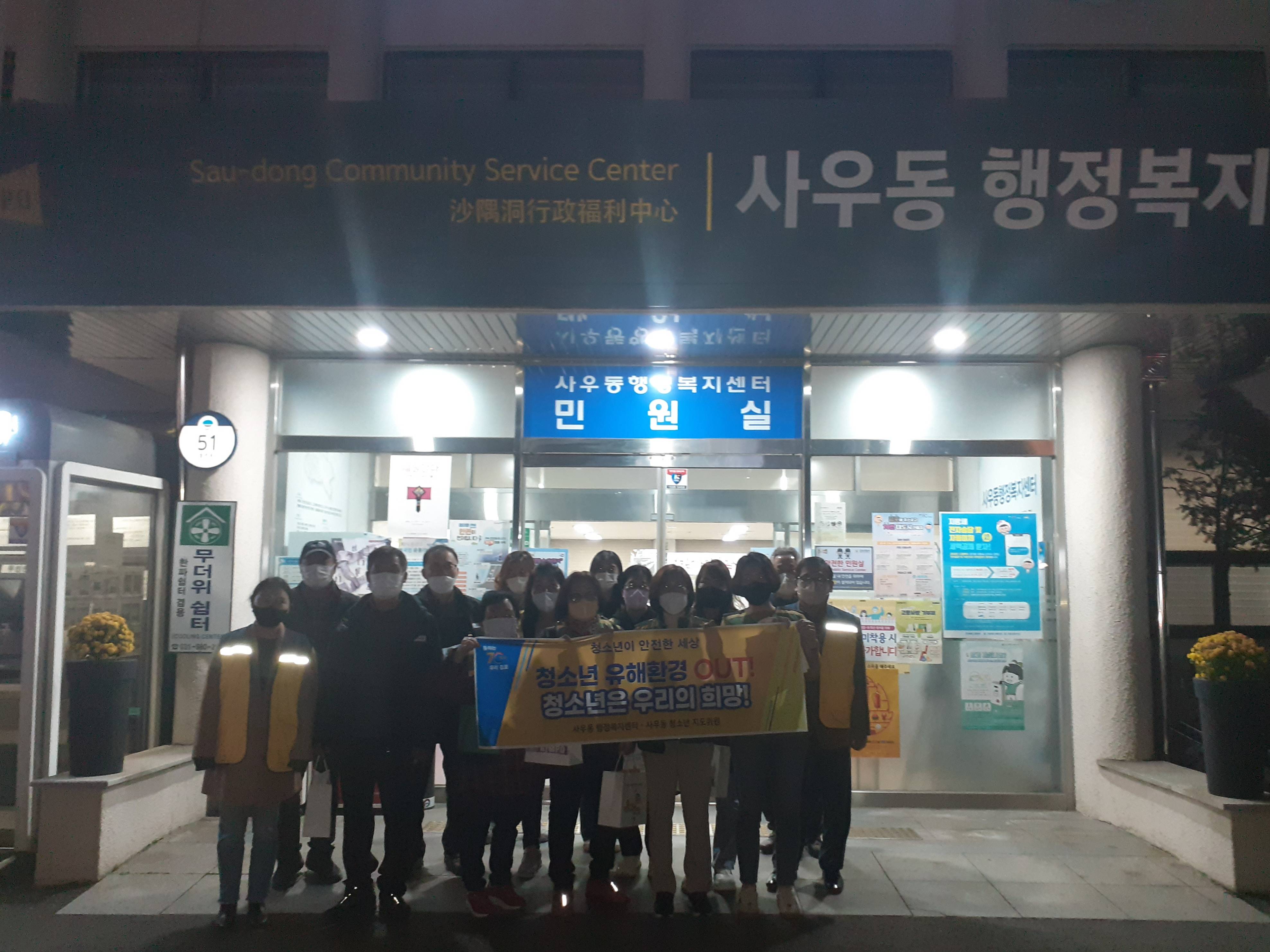 사우동행정복지센터는 청소년 지도위원 등 민관 협력을 통해 음주·흡연 등 청소년 일탈행위를 차단하고 지역 내 유해업소 업주의 청소년 보호의식 확산 등 캠페인을 지속적으로 실시해 청소년 선도와 보호활동에 앞장설 예정이다.