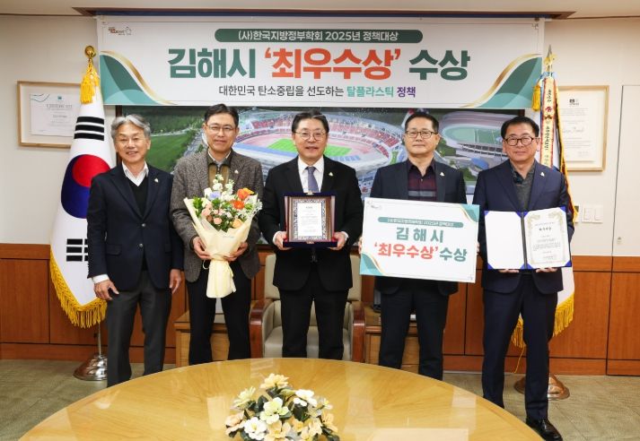 한방통신사 신유철기자 기자 | 김해시는 (사)한국지방정부학회 주관 2025년 지방정부 정책대상에서 ‘대한민국 탄소중립을 선도하는 김해형 탈플라스틱’ 정책으로 최우수상을 수상했다고 2일 밝혔다.
