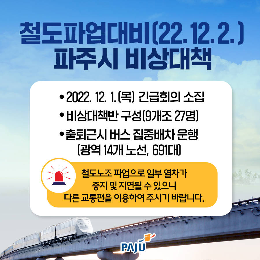 김경일 시장은 1일 긴급회의에서 비상대책반 구성, 대체 교통수단 투입 및 적극적인 대시민 홍보를 지시했다.