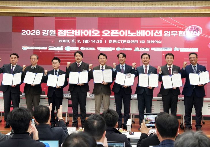한방통신사 양호선기자 기자 | 홍천군은 2월 2일, 강원특별자치도, 춘천시와 함께 춘천 ICT벤처 센터에서 「강원 첨단 바이오 오픈 이노베이션 프로그램」 업무협약식과 사업설명회를 개최하고, 올해부터 사업을 본격 확대 추진한다고 밝혔다.