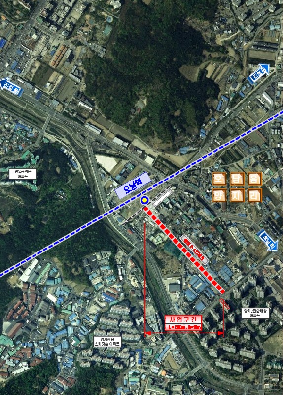 시는 지하철 4호선 오남역 개통에 따라 지하철역을 오가는 지역 주민들의 접근성을 향상하고, 주변 공동 주택 단지와 오남역의 연계 도로망 조성으로 주민들에게 교통 편의를 제공하며 지역 경제를 활성화하기 위해 ‘오남역 앞 도시계획도로(중2-107호) 개설 사업’을 추진하고 있다.