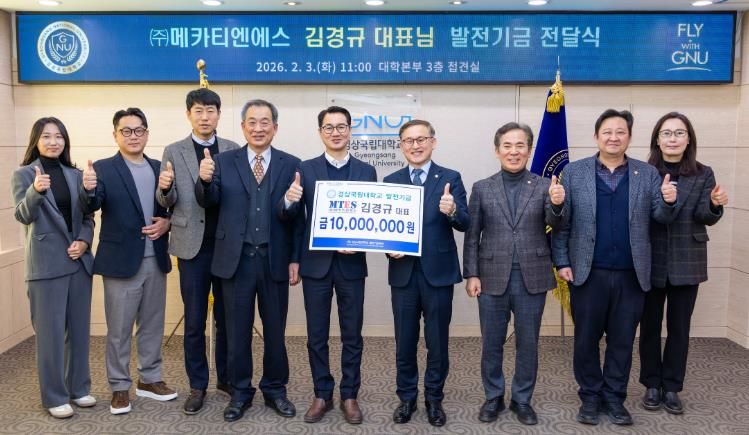 한방통신사 신유철기자 기자 | 경상국립대학교는 2월 3일 오전 11시 대학본부 3층 접견실에서 ㈜메카티엔에스 김경규 대표가 대학발전기금 1000만 원을 기부했다고 밝혔다.