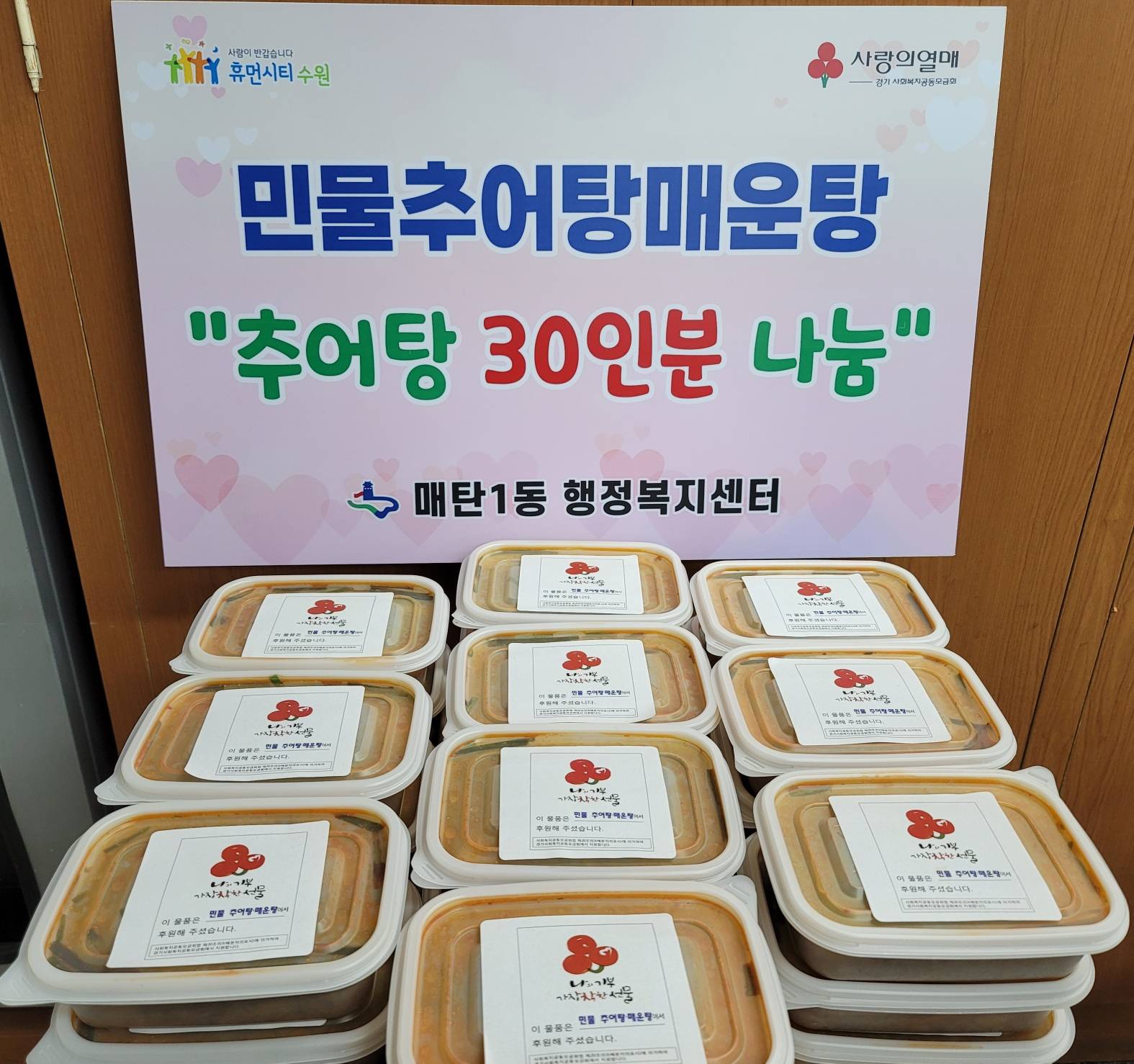 지난 5일 수원특례시 영통구 매탄1동에 위치한 ‘민물추어탕매운탕’(대표 이분필)은 관내 취약계층 이웃을 위해 맛있는 추어탕 30인분을 후원했다.