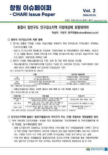 이번 창원 이슈페이퍼는 인구감소지역 지정대상에 통합시 일반구를 포함시키는 내용을 담은 개정법률안 발의 이슈를 다뤘다.