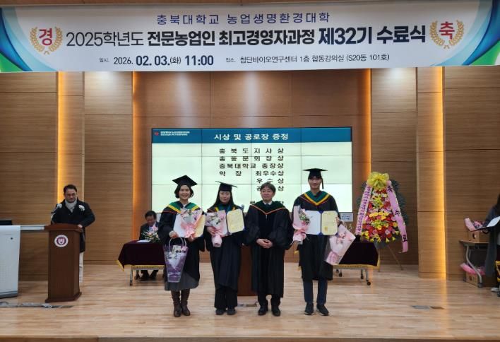 한방통신사 권영분기자 기자 | 충북 진천군 농업기술센터는 역량있는 농업인 CEO를 양성하는 ‘전문농업인 최고경영자과정’ 수료식에서 진천군 농업인 강민우 씨가 충북대학교 총장상을 수상했다고 3일 밝혔다.