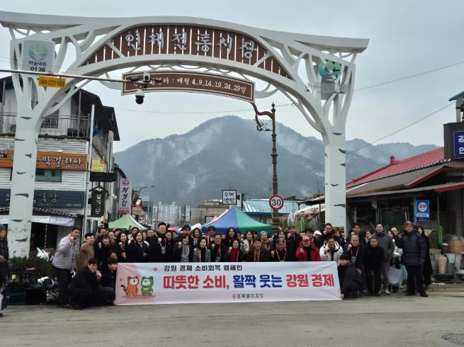 이번 행사는 윤인재 인제군 부군수와 김진태 강원특별자치도지사를 비롯해 관계 공무원, 유관기관 관계자 등 50여 명이 참여한 가운데, 설 명절 대목을 맞아 위축된 전통시장과 지역 상권에 활력을 불어넣기 위해 마련됐다.