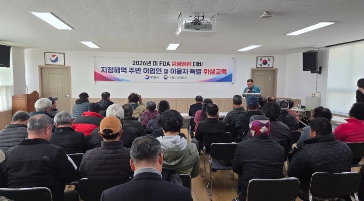 한방통신사 신유철기자 기자 | 통영시는 오는 3월 23일부터 4월 3일까지 예정된 미국 FDA 지정해역 위생점검을 대비해 패류 위생관리 실태 점검에 선제적으로 대응하고, 통영 수산물의 안전성을 국제적으로 인정받아 대미 수출에 차질이 없도록 하기 위해 ‘어업인 특별 위생교육’을 지난 4일 실시했다.