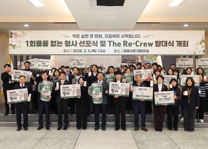 한방통신사 신유철기자 기자 | 김해시는 5일 오후 3시 대회의실에서 ‘1회용품 없는 청사’ 선포와 함께 자원순환 실천 조직인 ‘The Re-Crew’ 발대식을 개최했다.