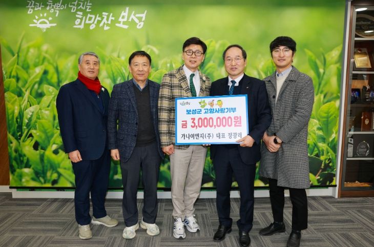 한방통신사 신다은기자 기자 | 보성군은 6일 가나이엔지 정광래 대표가 고향 발전을 응원하는 뜻으로 고향사랑기부금 300만 원을 기부했다고 밝혔다.