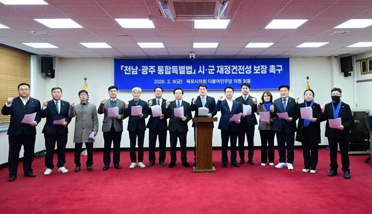 한방통신사 신다은기자 기자 | 목포시의회 더불어민주당 의원들은 6일, '전남·광주 통합특별법'에 시군 재정건전성 보장을 명시할 것을 촉구하는 성명을 발표했다.