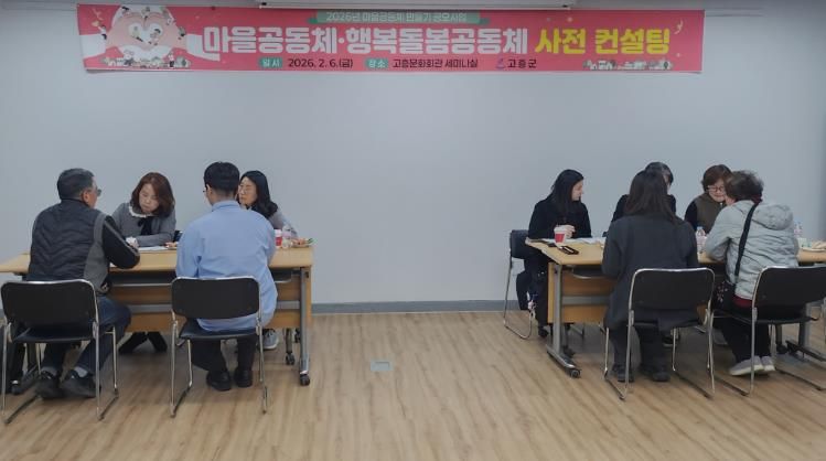 한방통신사 신다은기자 기자 | 고흥군은 6일 고흥문화회관 세미나실에서 2026년 마을공동체 공모사업에 선정된 공동체를 대상으로 사업의 방향성과 실행력을 높이기 위한 사전 컨설팅을 실시했다고 밝혔다.