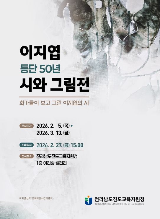 한방통신사 김성의 기자 | 전라남도진도교육지원청은 2월 5일부터 3월 13일까지 아리랑 갤러리에서 이지엽 시인 등단 50년을 기념하는 『시와 그림展』을 개최한다.