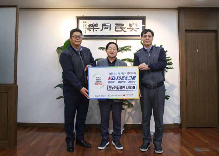 한편, KD운송그룹은 지난 2007년부터 관내 취약계층을 위해 온누리상품권 등을 꾸준히 기부하며 지역사회 나눔 문화 확산에 앞장서고 있다.