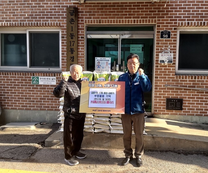 지난 7일, 17통 김윤기 통장은 저소득층을 돕기 위해 한수위 쌀 50포를 기부했으며, 15일에는 금촌일심회에서 어려운 이웃을 위해 써달라며 현금 100만원을 지정 기탁했다.