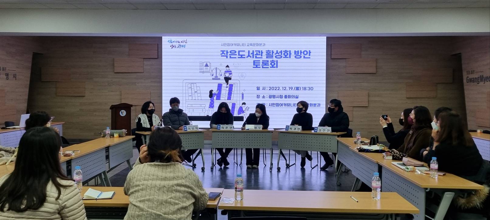 광명시(시장 박승원)는 지난 19일 시청 중회의실에서 시민참여커뮤니티 위원, 작은도서관 협의회장 등 20여 명이 참석한 가운데 작은도서관 활성화 방안 토론회를 개최했다.
