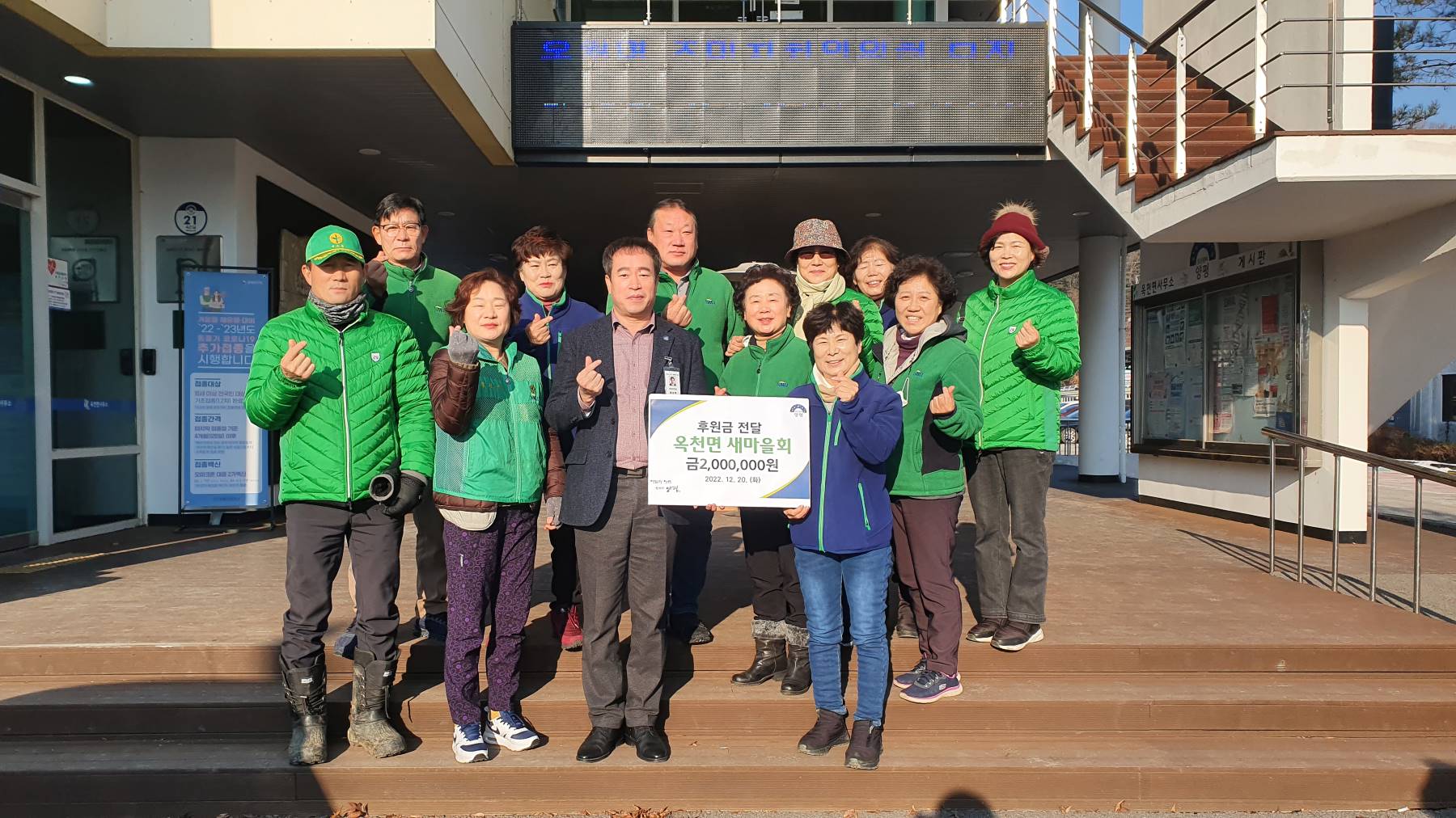 옥천면새마을회는 사랑의 고추장 담그기 행사, 김장나눔행사, 무연고 묘 제초작업, 마스크 착용 홍보 캠페인과 방역 소독 활동 등 지역과 더불어 살아가는 공동체 만들기에 노력하고 있으며, 면사무소 입구에 설치되어 있는 ‘옥처니 냉장고’에 반찬 나눔 등 지역사회의 기부문화 확산에 이바지하고 있다.