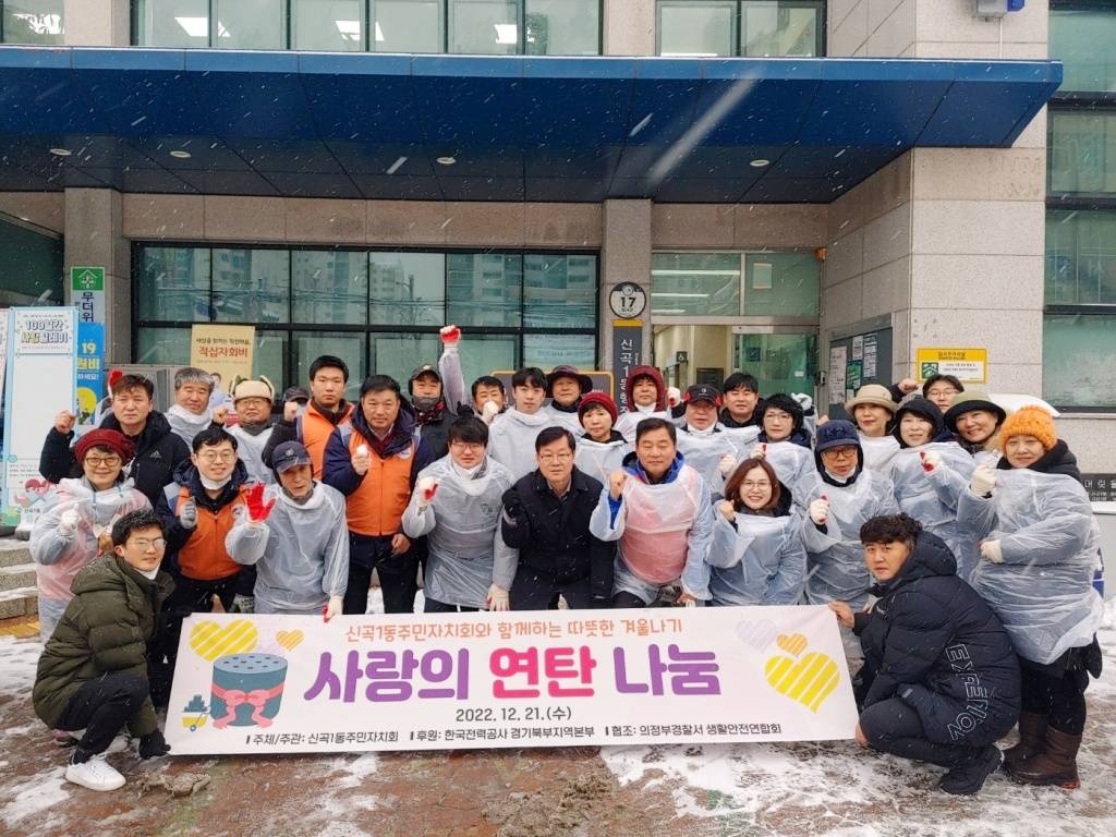 의정부시 신곡1동 주민자치회(회장 유문수)는 12월 21일 신곡1동 소외계층의 따뜻한 겨울나기를 응원하며, 사랑의 연탄 나눔 봉사를 진행했다고 밝혔다.