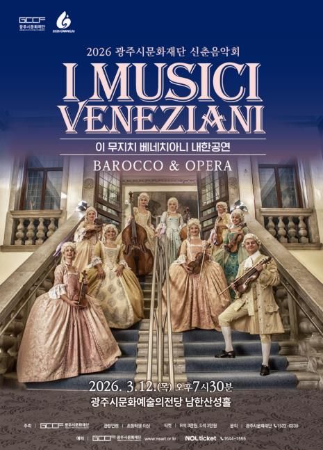 한방통신사 신유철기자 기자 | (재)광주시문화재단은 2026년 신춘음악회로 이탈리아 베네치아니를 기반으로 활동해온 바로크앙상블 〈이 무지치 베네치아니(I Musici Veneziani) 내한공연 – Barocco & Opera〉를 개최한다. 이번 공연은 베네치아 황금시대의 음악과 문화를 무대 위에 생생히 재현하며, 관객들에게 클래식을 통한 특별한 시간여행을 선사할 예정이다.