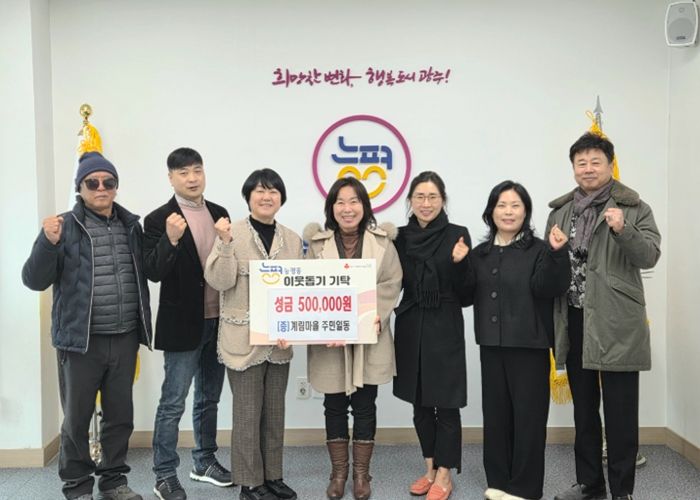 이와 함께 능평동 동현마을 주민들도 설 명절을 앞두고 성금 100만 원을 기탁했다. 동현마을 주민들은 자발적으로 성금을 마련해 지역 내 취약계층 지원에 나섰으며 주민 대표는 앞으로도 이웃과 함께하는 나눔 활동을 지속하겠다고 전했다.