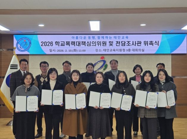 한방통신사 신태공 기자 | 충청남도태안교육지원청(교육장 지재규)은 10일(화), 태안교육지원청 대회의실에서 ‘2026-2027학년도 학교폭력대책심의위원회 위원 및 2026학년도 학교폭력 전담조사관 위촉식’을 개최했다.