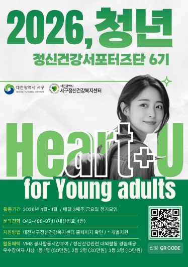 한방통신사 신태공 기자 | 대전 서구 정신건강복지센터는 다음 달 6일까지 청년 정신건강 서포터즈 ‘마음이어유’ 6기 참여자를 모집한다.