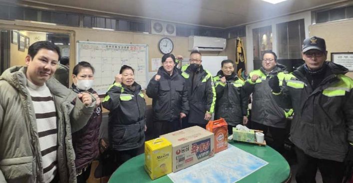 한방통신사 신유철기자 기자 | 동두천시 보산동 행정복지센터는 지난 10일 설 연휴를 앞두고 지역 치안을 위해 묵묵히 근무하는 자율방범대원들을 격려하고자 관내 태풍지대 방범초소를 방문해 감사의 뜻을 전했다.