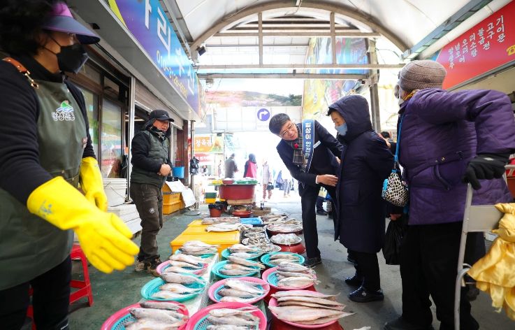 진병영 군수는 전통시장을 돌며 설 제수용품과 농수산물, 생활필수품 가격 동향을 살피고, 상인 및 군민들의 의견과 건의 사항을 청취했다.