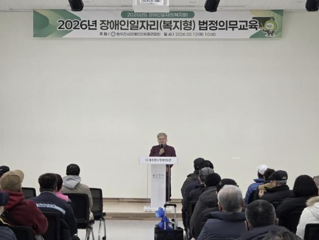 한방통신사 신유철기자 기자 | 동두천시장애인단체총연합회는 장애인일자리(복지일자리) 참여자의 근로 권익 보호와 안전한 근무환경 조성을 위해 2026년 법정 의무교육을 실시했다. 이번 교육에는 참여자 103명이 참석했다.
