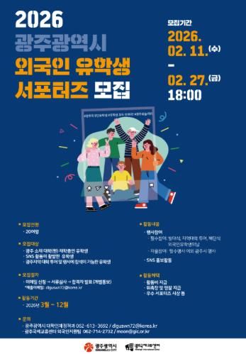 한방통신사 김성의 기자 | 광주광역시는 광주의 매력과 지역대학 정보를 세계에 알릴 ‘제3기 외국인 유학생 서포터즈’ 20명을 오는 27일까지 모집한다.