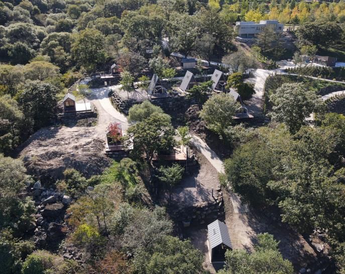 야영장은 캠퍼하우스 11동, 카라반 15동, 텐트사이트 31개소 등 다양한 숙박·야영 시설을 갖추고 있다. 특히 카라반 구역에는 커뮤니티 오피스를 갖춘 ‘워케이션(Work+Vacation)’ 공간이 조성되어 있어 자연 속에서 업무와 휴식을 동시에 즐길 수 있는 체류형 관광지로 운영되고 있다.