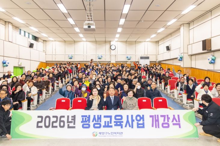 한방통신사 신유철기자 기자 | 인천 윤환 계양구청장이 23일 계양구노인복지관에서 열린 ‘2026년 평생교육사업 개강식’에 참석해 어르신들의 새로운 배움의 출발을 응원했다.