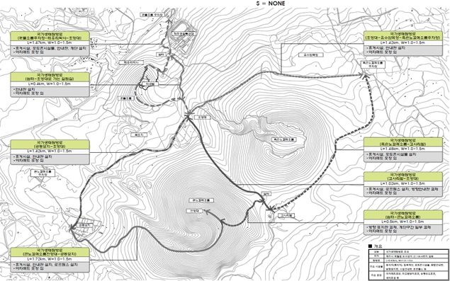주요 사업 내용은 ▲보행매트(야자매트) 7.29km 정비 ▲타이어매트 1.71km 철거 ▲침목계단 763개 정비 ▲벤치형 포토존 2개소 설치 ▲의자·종합안내판·방향표지판·로프 펜스 등 시설 정비 등이다.