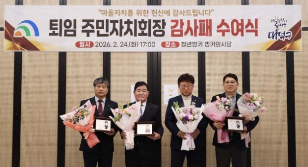대덕구 관계자는 “주민자치 현장에서 묵묵히 헌신해 주신 세 분 회장님의 열정과 봉사가 지역 공동체를 더욱 단단하게 만들었다”며 “그동안의 노고에 깊이 감사드리며 앞으로도 지역 발전을 위한 든든한 조언자로 함께해 주시길 바란다”고 말했다.