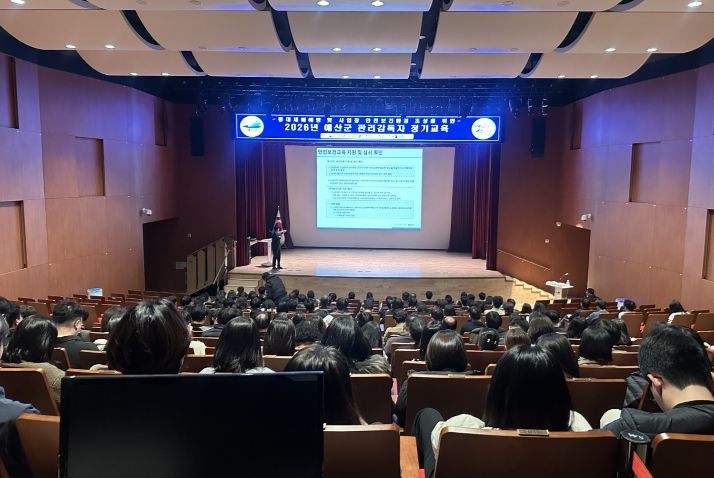 한방통신사 신태공 기자 | 예산군은 지난 23일 군청 추사홀에서 중대재해 예방과 관리감독자의 전문성 강화를 위해 ‘2026년 상반기 관리감독자 집합교육’을 실시했다고 밝혔다.