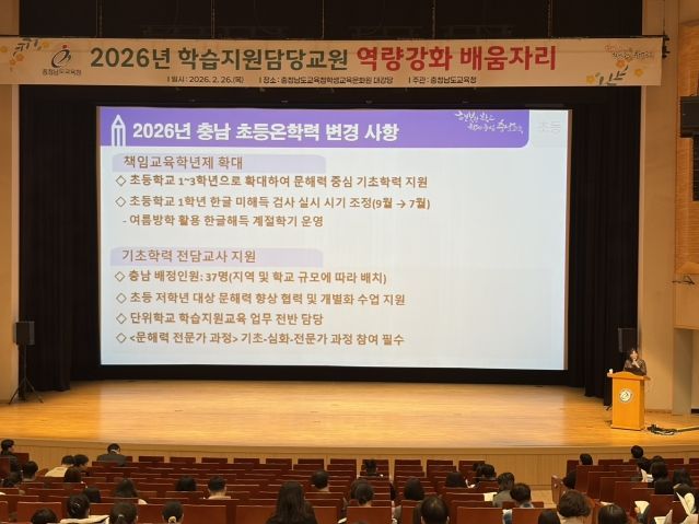 한방통신사 신유철기자 기자 | 충남교육청은 26일 충남교육청학생교육문화원(천안)에서 2026년 학습 지원 담당 교원 410명과 14개 시군 교육지원청 기초학력 담당 장학사를 대상으로 배움자리를 개최했다.