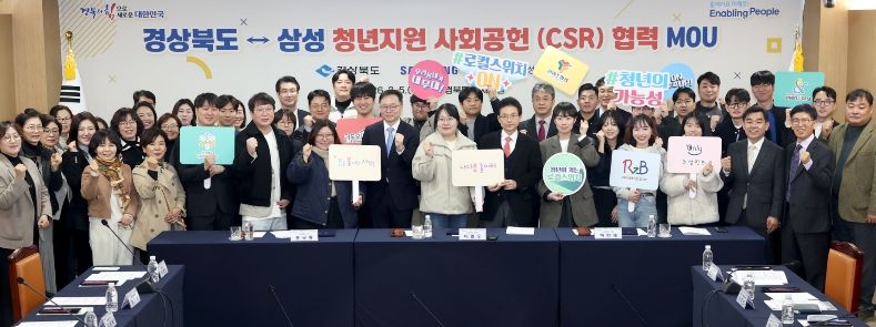 이날 협약식에는 이철우 경북도지사를 비롯해 삼성물산 송규종 사장, 김홍락 상무, 삼성생명 이경민 고문, 삼성전자 정효명 부사장, 하헌재 상무 등 삼성 주요 임원진과 청년단체 대표 등 50여 명이 참석했다.