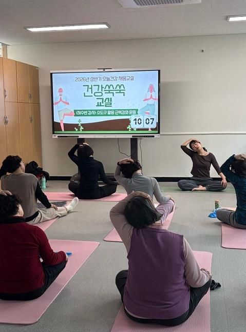‘건강쑥쑥교실’은 근력 강화 운동 프로그램으로 일상생활에 필요한 기초 체력 증진에 초점을 맞추고 있다. 전문 강사가 소도구를 활용해 안전하면서도 효율적인 운동을 진행한다.