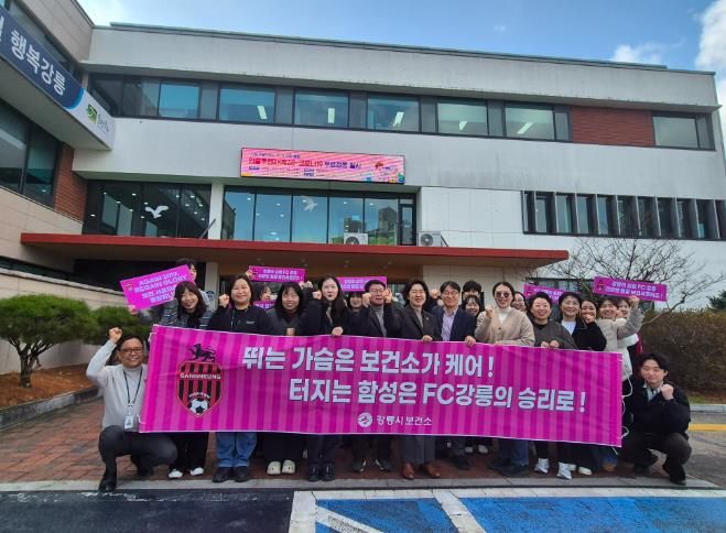 특히 “건강은 보건소가 지키고, 승리는 FC강릉이 가져온다!”는 재치 있는 구호를 외치며 시민 건강 증진과 함께 지역 연고 팀의 승리를 위해 함께 뛸 것을 다짐했다.