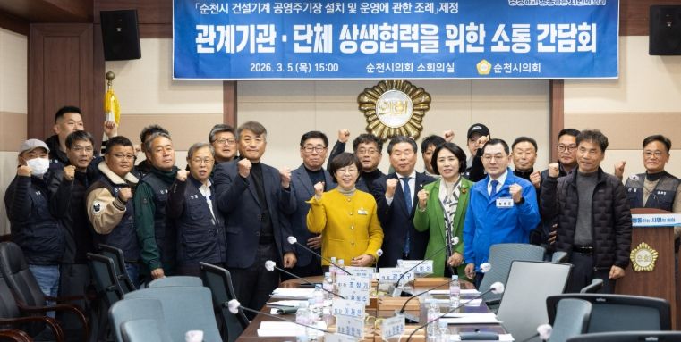 한방통신사 신다은기자 기자 | 순천시의회 최미희 의원은 지난 5일 '순천시 건설기계 공영주기장 설치 및 운영에 관한 조례' 제정을 위한 간담회를 개최했다.