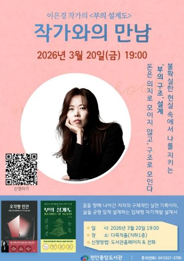 강연 참여 신청은 천안시도서관 누리집에서 가능하며, 문의사항은 중앙도서관으로 하면 된다.