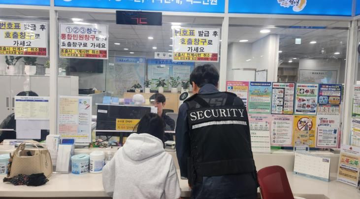 특히 안전요원은 단순 경비를 넘어, 거동이 불편한 어르신을 부축하거나 서류 작성을 돕는 등 ‘민원 도우미’ 역할까지 자처하고 있어 친절하고 안전한 민원실 분위기를 이끌어 내고 있다.