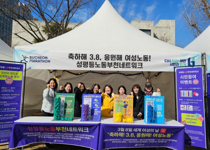 특히 지난 8일, ‘2026 부천국제 10km 로드레이스’의 부대행사가 열린 부천시청 잔디광장에서 ‘성평등노동부천네트워크’는 성평등한 노동환경 조성을 주제로 ‘폼폼 투표’ 체험 이벤트 부스를 운영했다. 이날 행사에는 대회 참가자와 시민 1,300여 명이 방문하여 주요 노동 이슈에 대해 함께 공감하는 등 인식개선에 뜻을 모았다. 특히 많은 시민들이 ‘성별임금격차 해소’, ‘고용안정’의 필요성에 가장 많은 공감을 표했다.
