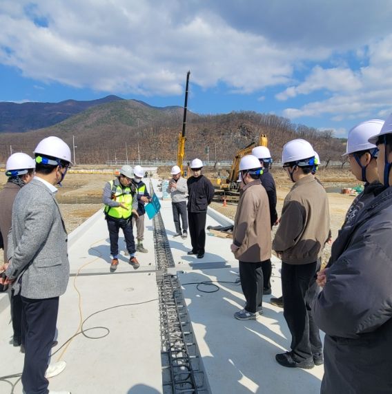 특히 프리캐스트 슬래브를 활용한 교량 슬래브 거치 작업이 진행되어 공무원들의 실제 시공과정과 공법의 특징을 이해하는 데 큰 도움이 됐다.