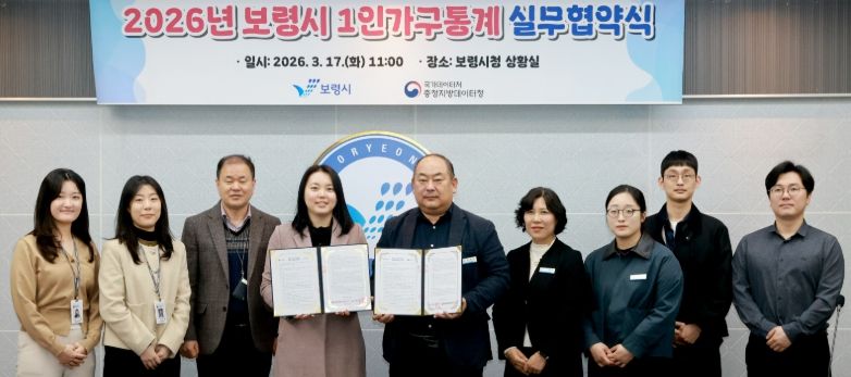 한방통신사 신태공 기자 | 보령시는 17일 충청지방데이터청과 실효성 있는 맞춤형 정책 수립을 위한 ‘1인 가구 통계’ 작성 실무협약을 체결했다.