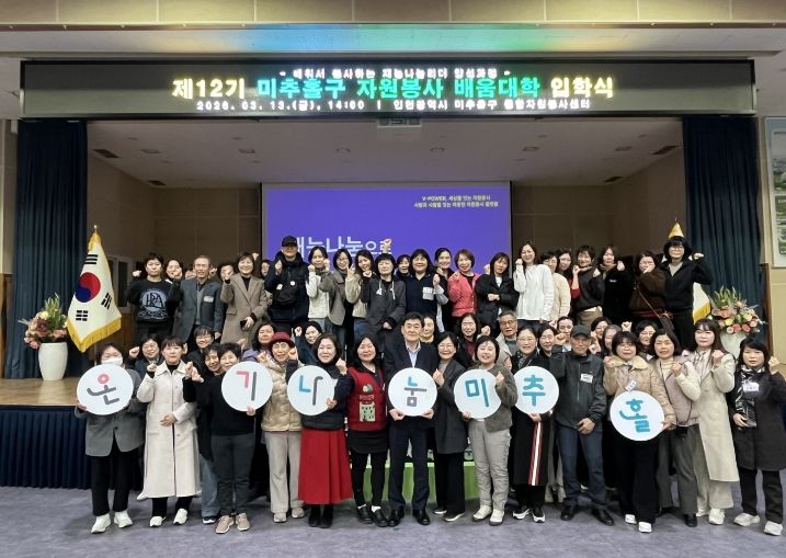 한방통신사 신유철기자 기자 | 인천 미추홀구종합자원봉사센터(센터장 유중형)는 지난 13일 미추홀구청 대회의실에서 ‘2026 미추홀구 자원봉사 배움 대학 입학식’을 진행했다.