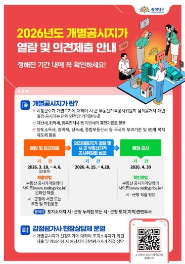 아울러 도는 열람 기간 도민의 이해를 돕기 위해 ‘감정평가사 현장상담제’를 운영한다.