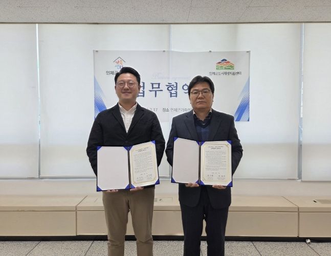한방통신사 양호선기자 기자 | 인제군가족센터와 인제군도시재생지원센터는 3월 17일 지역사회 공동발전과 지속가능한 성장 기반 마련을 위한 업무협약(MOU)을 체결했다.