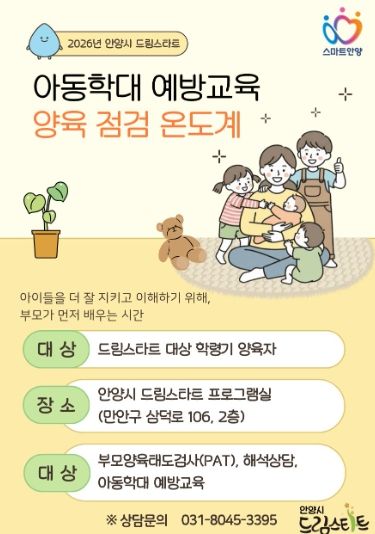 한방통신사 신유철기자 기자 | 안양시가 아동 학대를 사전에 차단하고 건강한 양육 환경을 조성하기 위해 맞춤형 부모 교육 프로그램인 ‘2026 드림스타트 양육 점검 온도계’를 본격 가동한다고 18일 밝혔다.